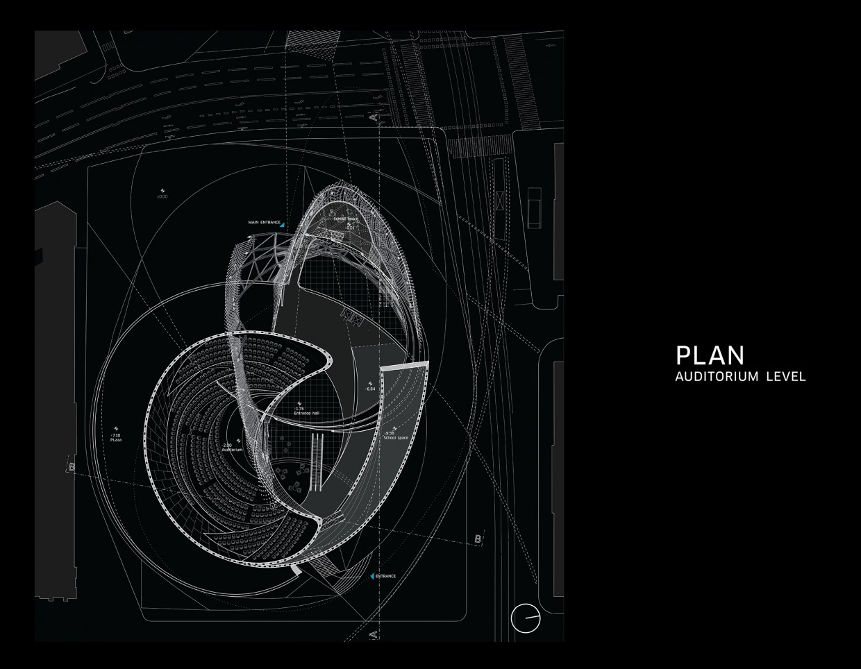 „Sonosphere“ explores how architecture acts as a controlled soundscape and a sonic filtration system. The hybrid of an acting school, public place and various performance spaces form an urban activator with various acoustic zones and reacts to the surroundings. The fibers of the building perform like a sonic filtration system, densifying, opening and growing three dimensional.