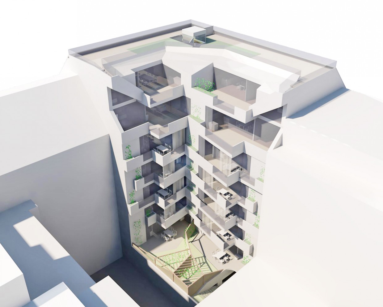 Renovation and rooftop extension of residential building located in Vienna’s 7th district.